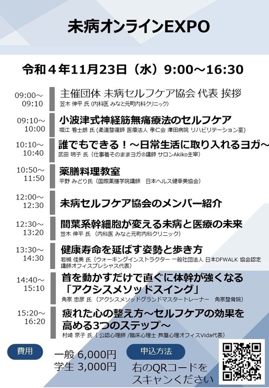 この度、様々な分野の実践者から未病ケアをお伝えする『未病オンラインEXPO2022』を開催することになりました。